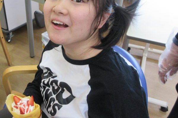 2/4 13:00から15:30までクレープの寄贈がありました。作ってくれたのは、「CAFÉ 星海月」 片倉さんにより全利用者、職員分も合わせて70枚も焼いていただき
